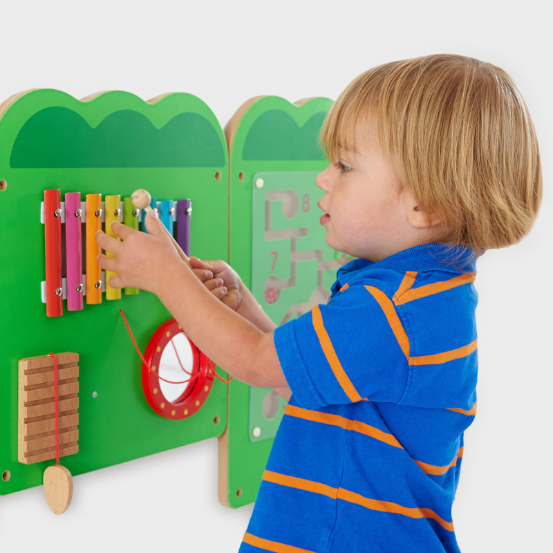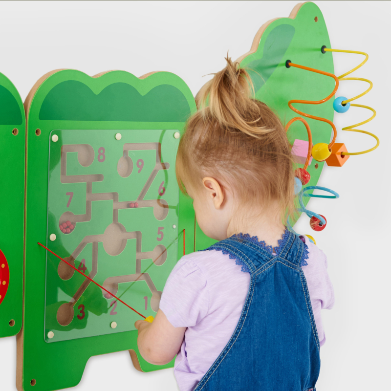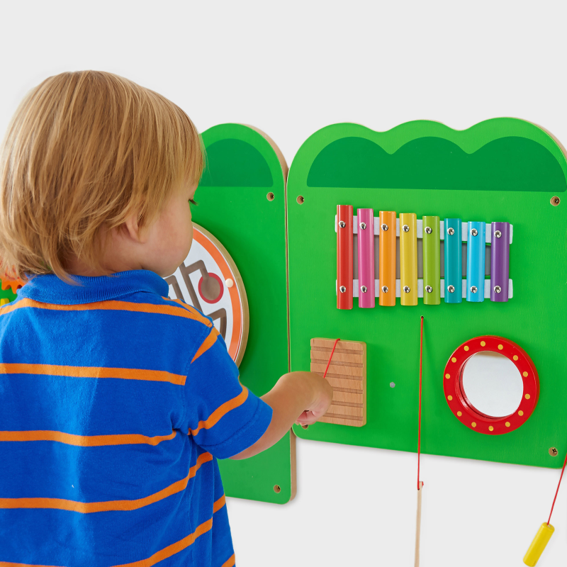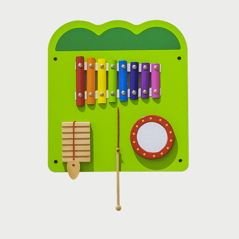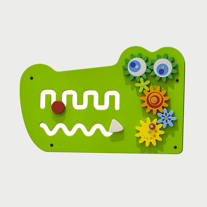 Το Πάνελ δραστηριοτήτων τοίχου Κροκόδειλος είναι ένα εκπαιδευτικό ξύλινο σετ τοίχου σε 5 πάνελ, το καθένα με διαφορετικές δραστηριότητες που ενισχύουν την ικανότητα των χεριών, την παρατηρητικότητα και τη γλωσσική ανάπτυξη. Οι δραστηριότητες προσφέρουν παιχνίδι με ήχους, χρώματα και σχήματα, προωθώντας την ανακάλυψη και τη δημιουργικότητα.
